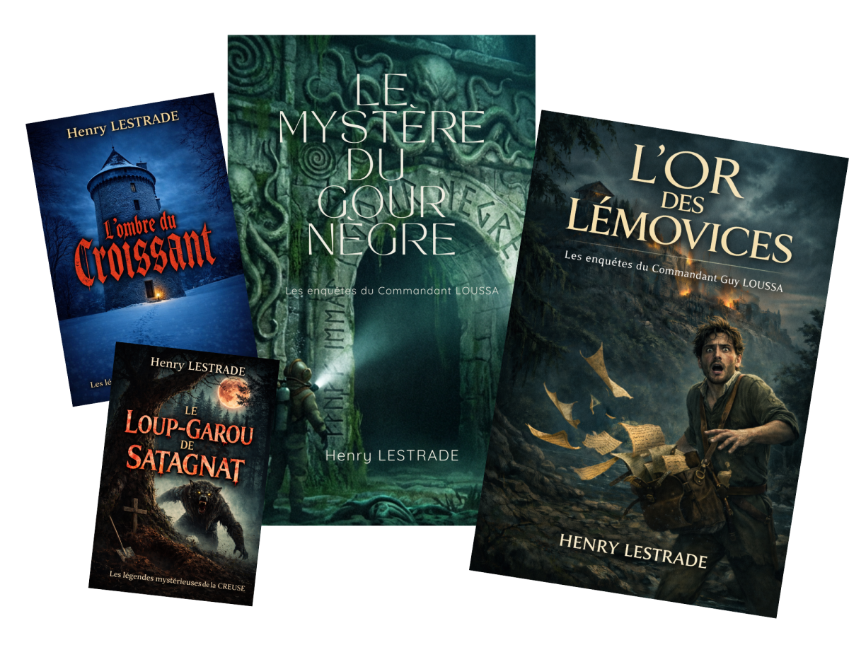 Plongez dans des récits où le mystère et le fantastique se mêlent aux légendes du Limousin. Je suis Henry Lestrade, auteur de romans policiers noirs et d'histoires ancrées dans l'étrange.